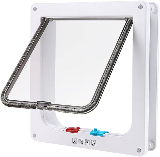 Small Round Cat Door With 4-way Lock Pet Plastic Window Lockable Safe Cat Gate Kennel Black White Pet Dog Door Entry And Exit