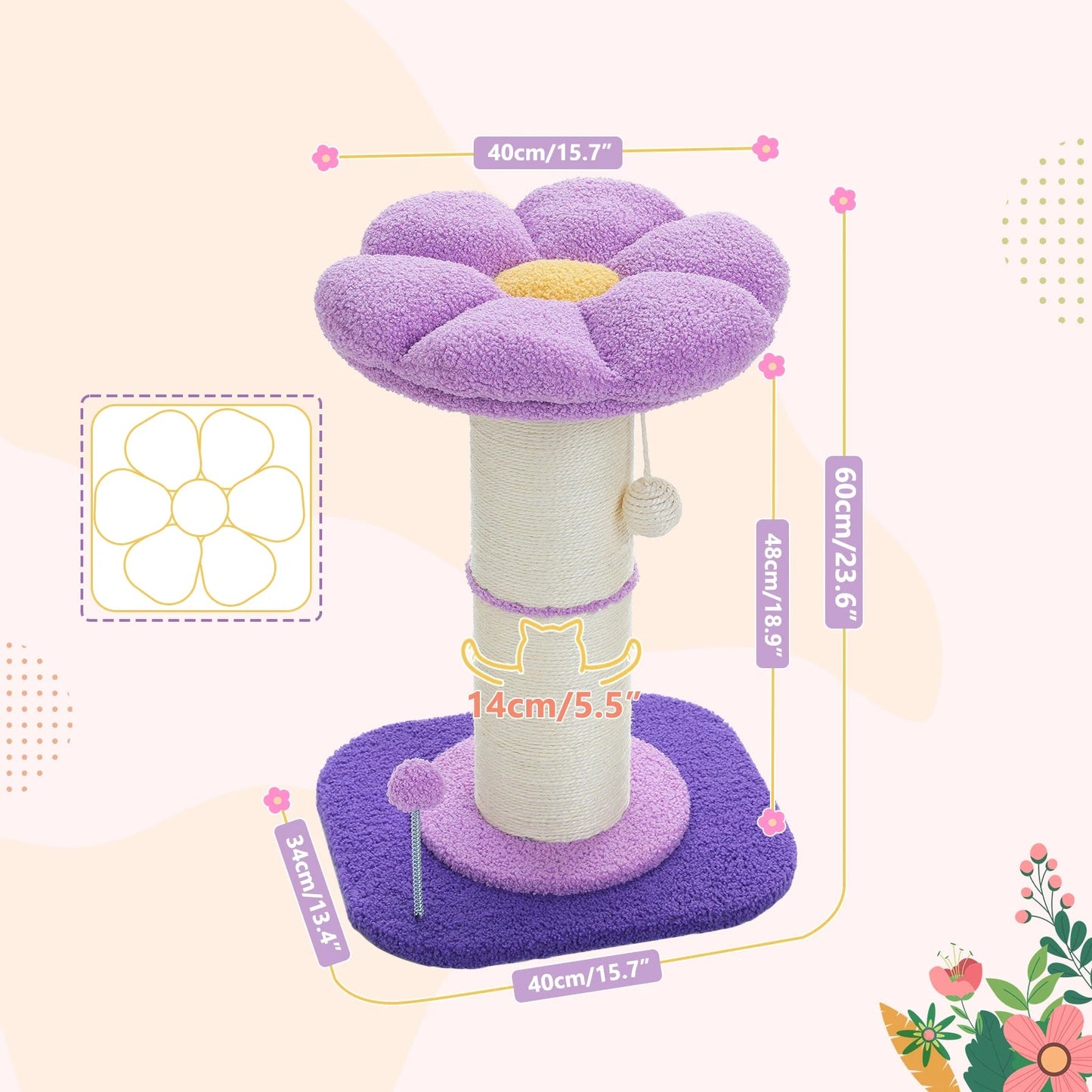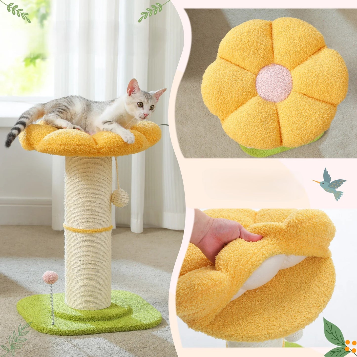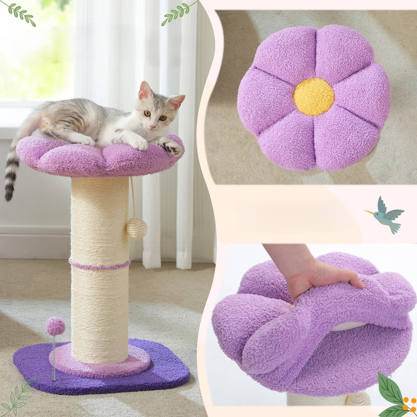 Arbre à chat en forme de fleur avec lit amovible pour chat en forme de fleur, boule à ressort, griffoir pour chat pour l'intérieur avec grattoir super épais