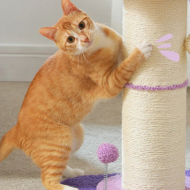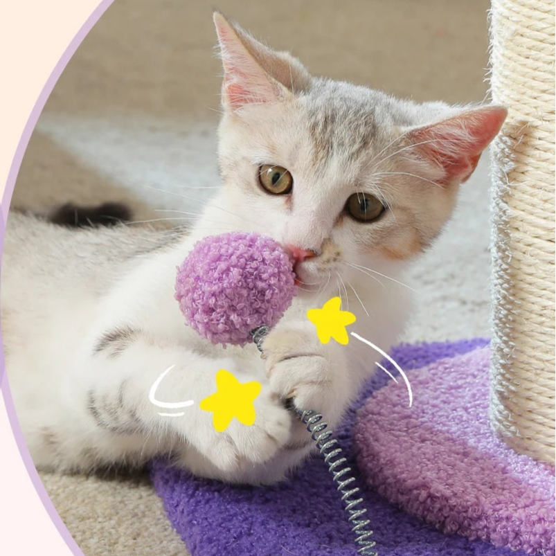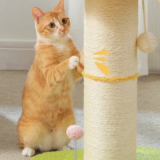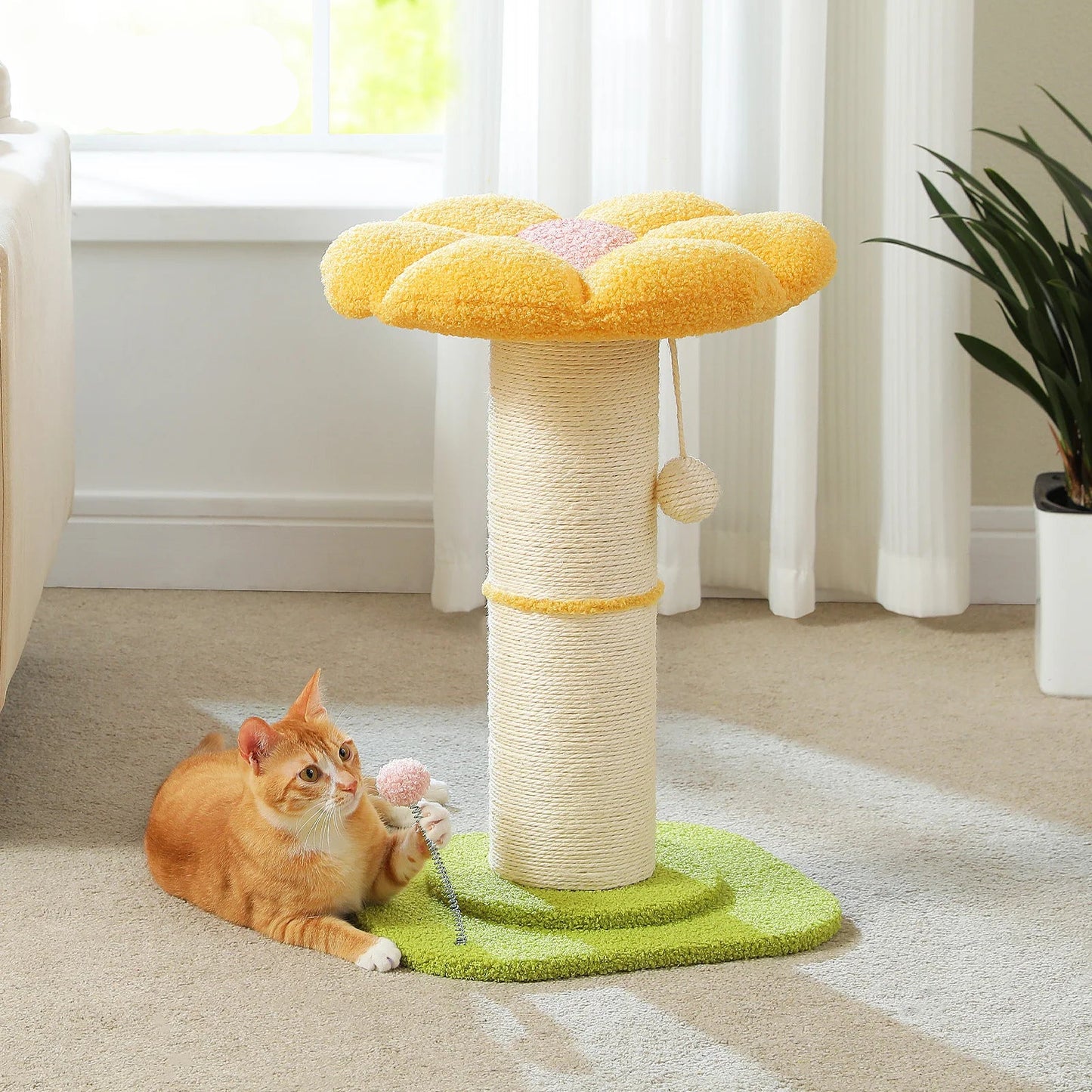 Arbre à chat en forme de fleur avec lit amovible pour chat en forme de fleur, boule à ressort, griffoir pour chat pour l'intérieur avec grattoir super épais
